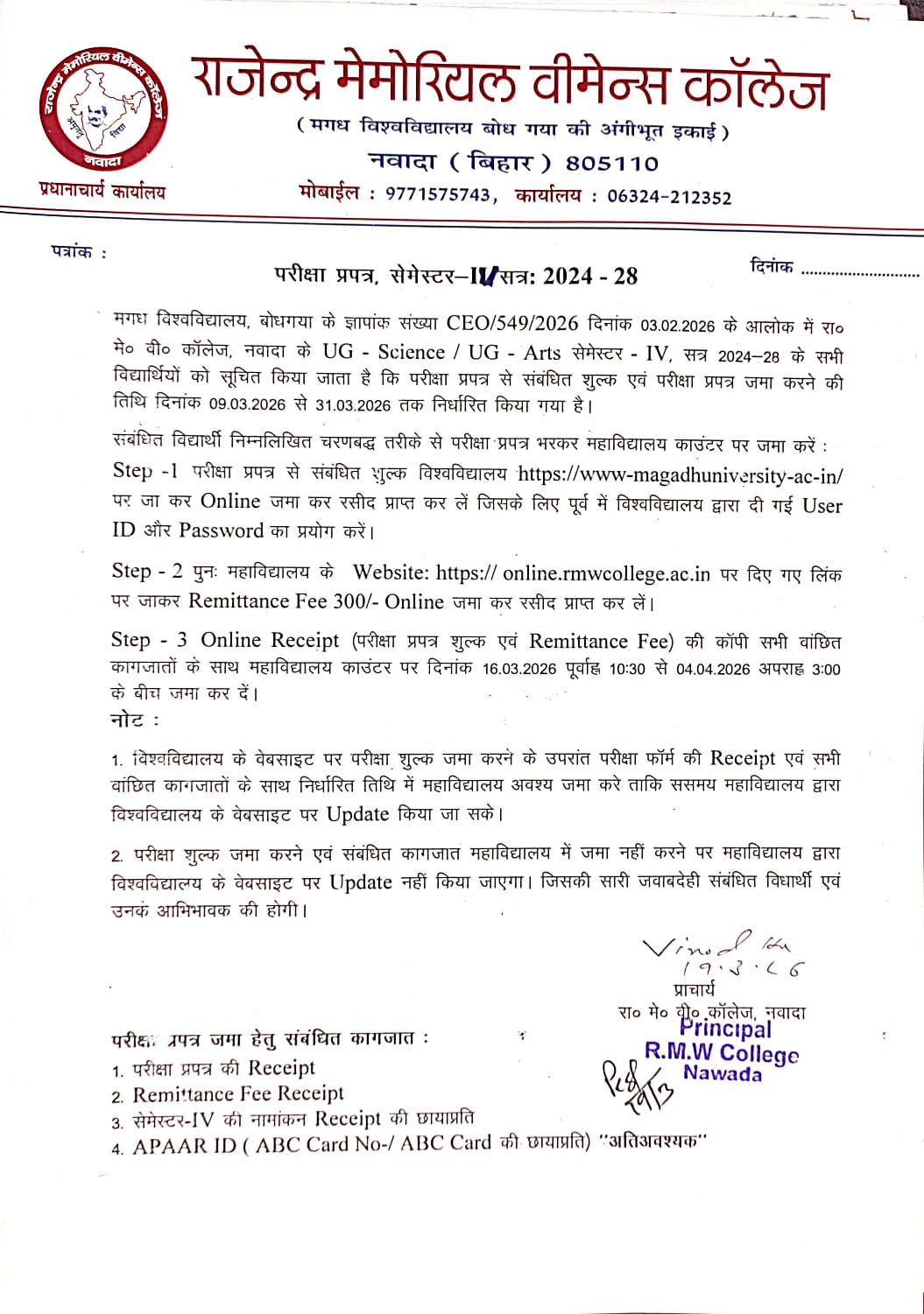© 2026 Rajendra Memorial Women's College, Nawada. All rights reserved